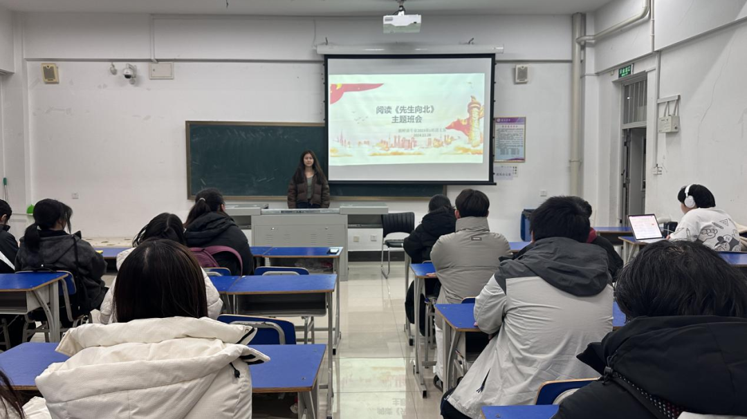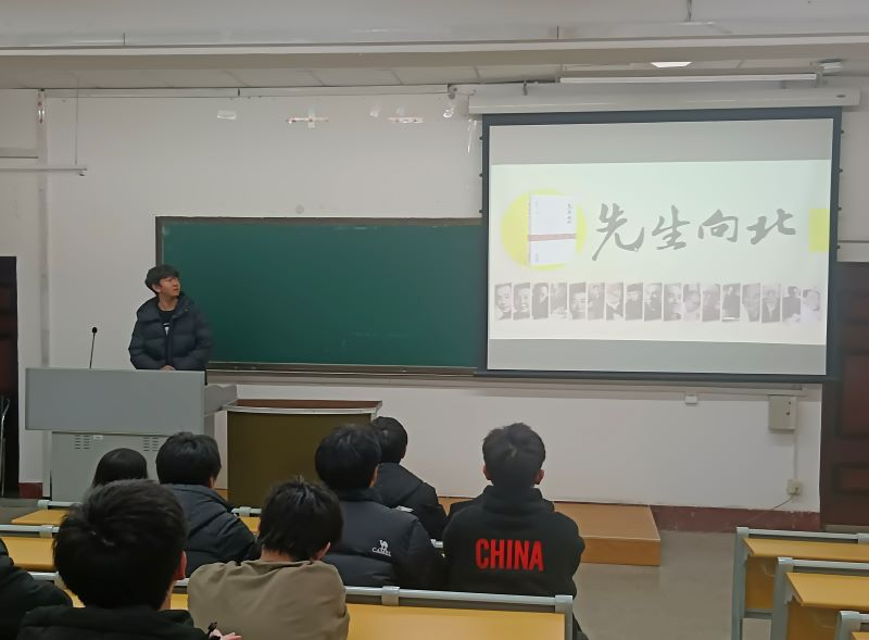 为深刻理解先辈们强烈的家国情怀,培养新时代大学生的社会责任感和,致敬先辈“北上”精神,11月25日,马克思主义学院在求真楼511教室举办《先生向北》读书分享会。本次活动使同学们深刻感受先辈们的“北上”精神,也使同学们更好的明确新时代青年责任,增强历史自觉、文化自信和思想政治素养。