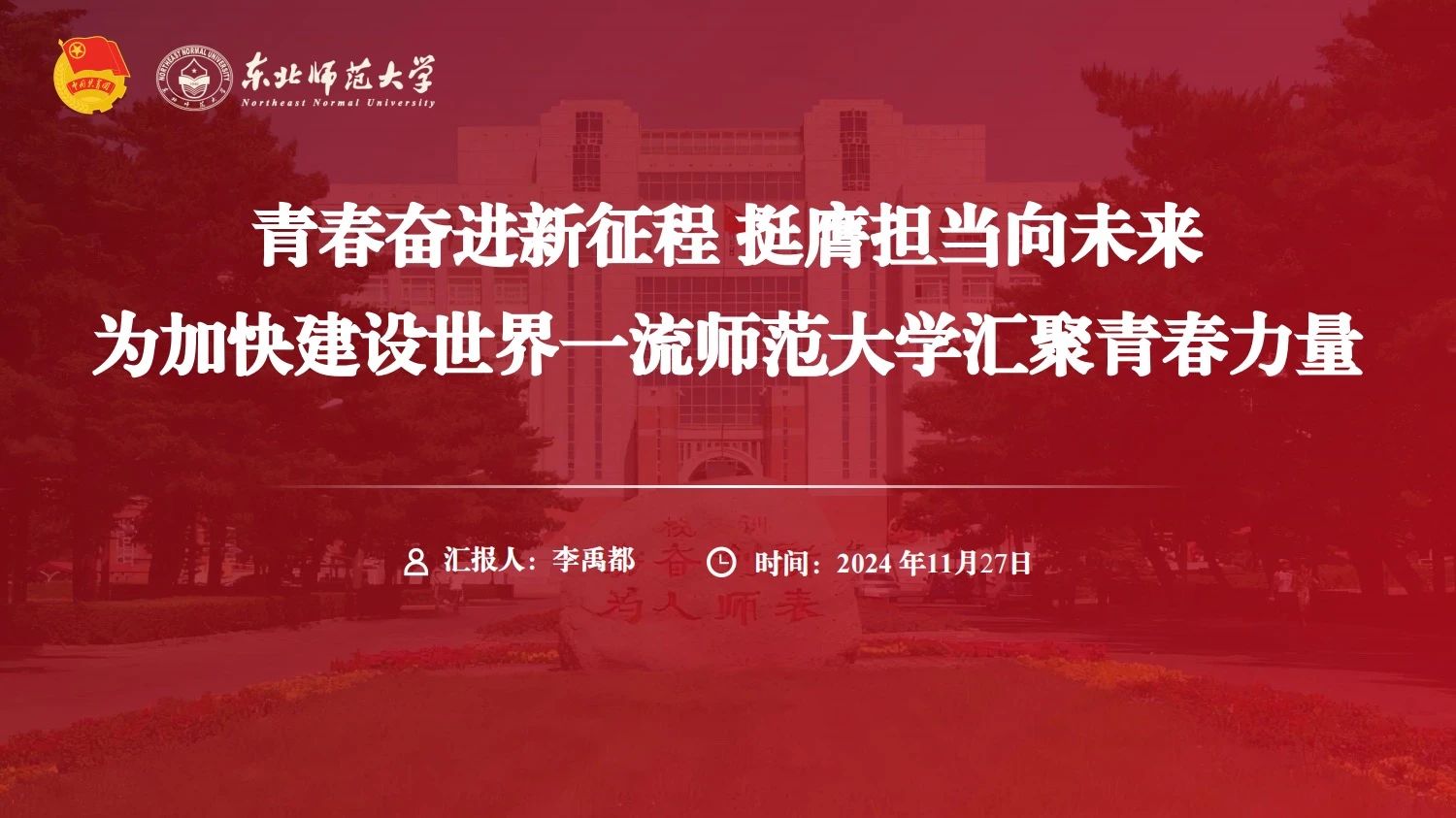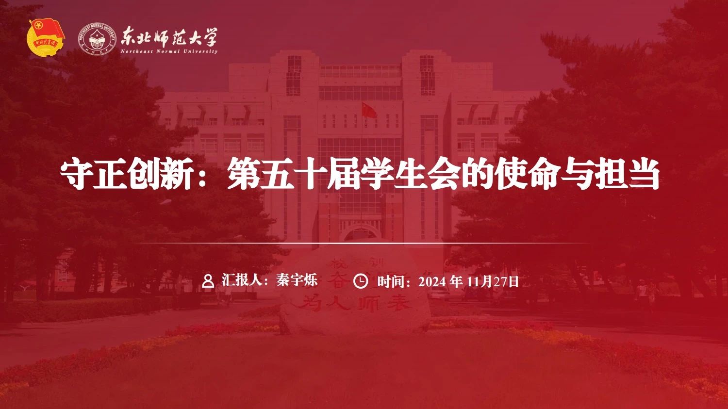 东北师范大学学生会主席团成员、外国语学院2021级英语专业本科生李禹都与学生会主席团成员、马克思主义学部2021级思想政治教育专业本科生秦宇烁分享了学生会通过系统的教师技能培养,提升教师素养以实现强师报国愿景。同时,以学生需求为导向,创新服务模式,打造示范型服务型学生组织,助力学生全面成长。并积极投身校园生态建设,从文化氛围营造到环境优化美化,全方位构建和谐校园。