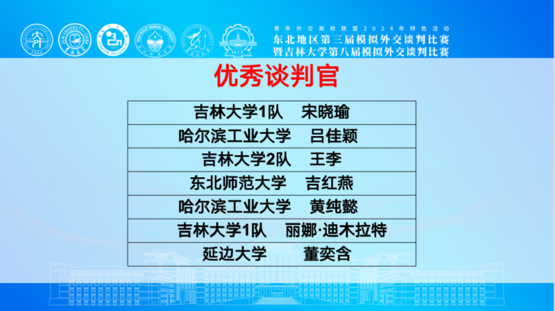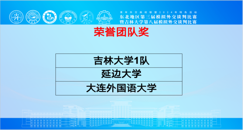 11月17日,我校代表队在东北地区第三届模拟外交谈判比赛暨吉林大学第八届模拟外交谈判比赛中荣获佳绩。