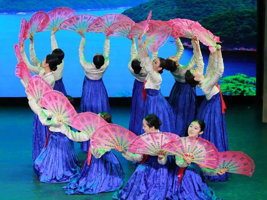 我校艺术学院学生带来伽倻琴重奏《锦绣江山》、群舞《桔梗谣》