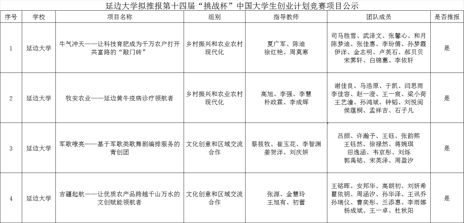 为进一步做好第十四届“挑战杯”中国大学生创业计划竞赛拟推报国赛工作,按照团省委相关工作要求,现将作品具体信息公示如下: