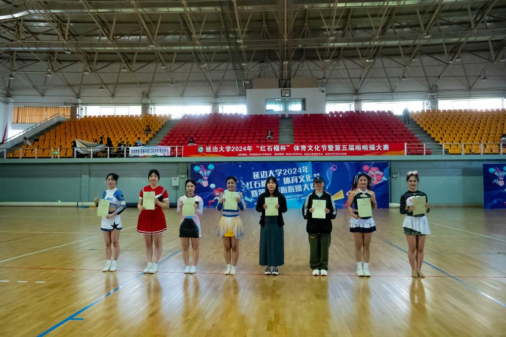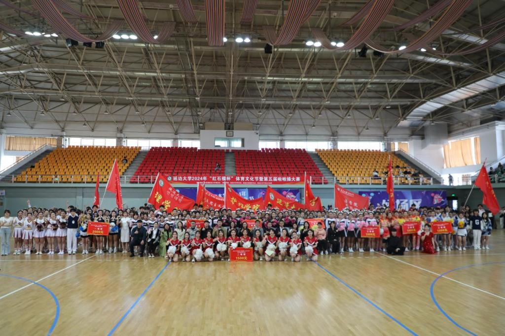 6月2日,由共青团延边大学委员会主办、延边大学学生会、研究生会以及YBUC社团承办的延边大学“红石榴杯”体育文化节暨第五届啦啦操比赛在延吉校区举办。本次比赛延吉校区共有15个学院,珲春校区共有5个学院,近400名学子参与其中。延边大学团委书记崔光福、延边大学团委组织部部长金慧玲、各学院团委书记出席了本次比赛;吉林省啦啦操协会延边州分会长、啦啦操国家高级教练、啦啦操国家一级裁判张春一以及健美操国家高级教练、国家级裁判申明玉担任本次比赛的评委。赵旭、张馨予担任本次比赛的主持人。