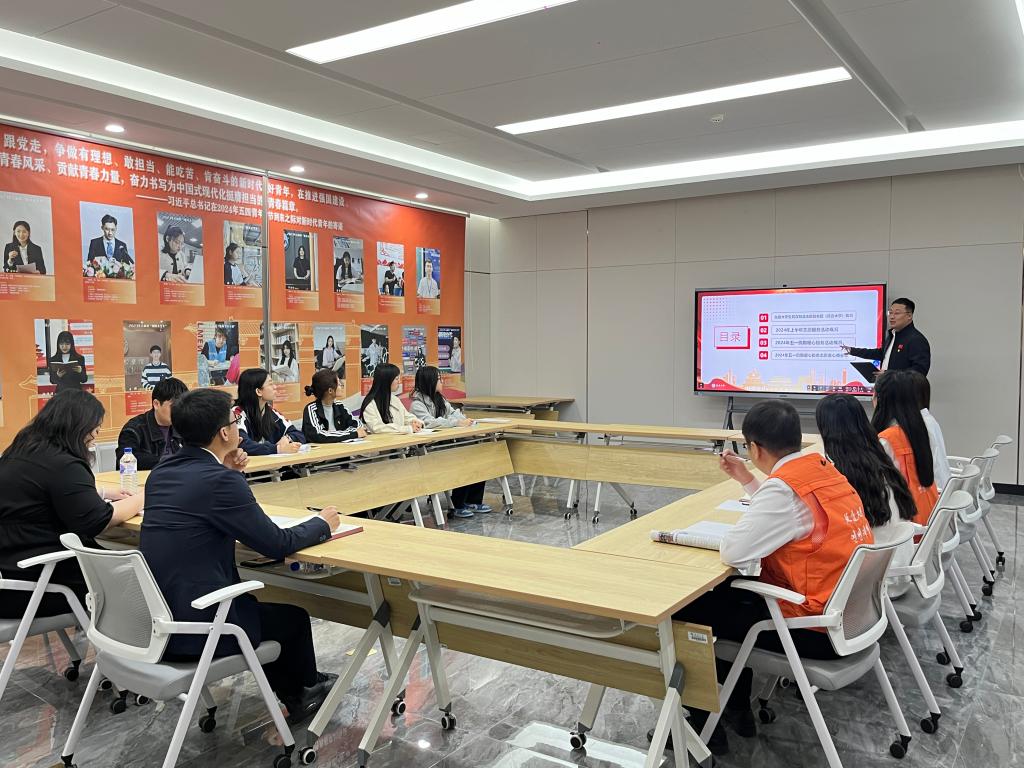 会上,校团委干事周莫寒汇报2024年五一期间全国大学生民汉双语志愿服务团(延边大学)开展志愿服务活动情况,志愿者代表针对不同岗位进行了工作经验交流。