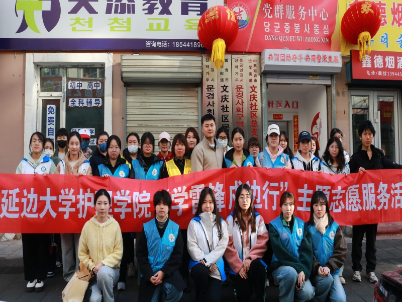 为践行雷锋精神,践行全民健康理念,用专业与爱心为社区居民的健康保驾护航。3月12日下午3:00,延边大学护理学院青年志愿者于延吉市进学街道文庆社区开展志愿服务活动。学院辅导员李岩带领护理学院30余名志愿者共同参加了此次活动。