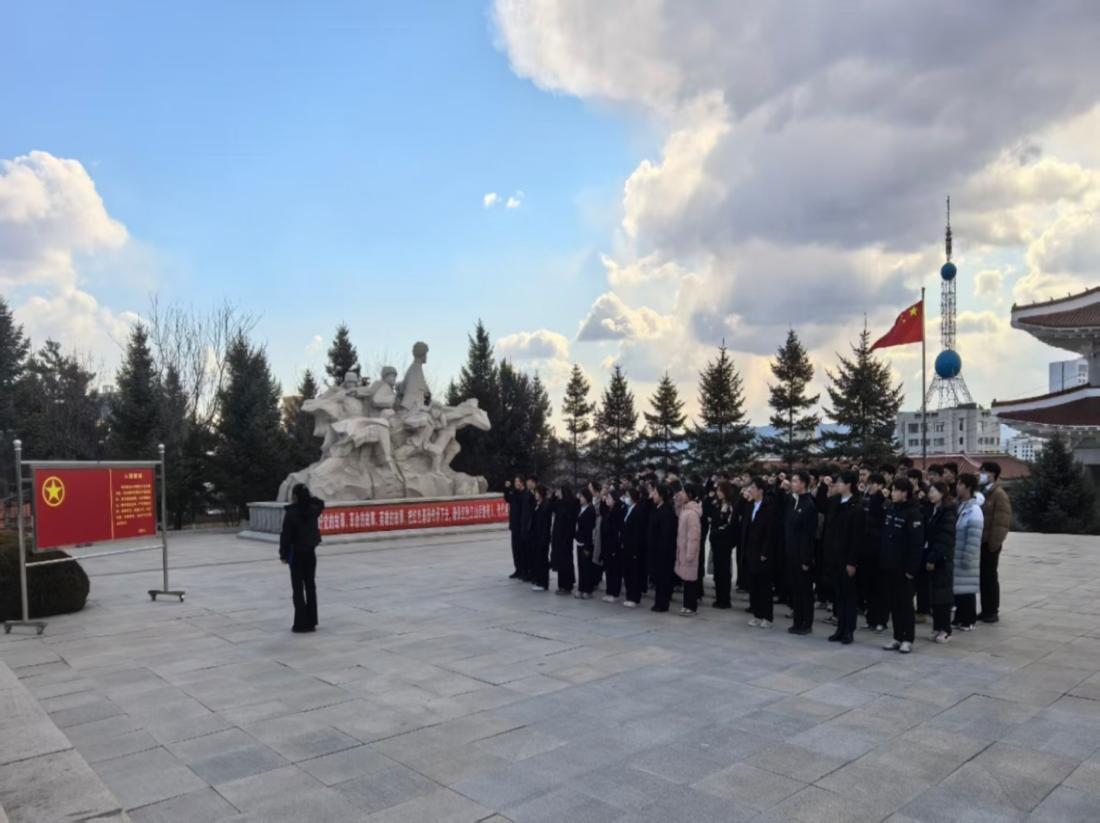 参与追思的全体成员佩戴白花,在革命烈士纪念碑前肃立默哀,缅怀革命先烈,表达敬仰追思。祭奠仪式结束后,师生们走进烈士陵园纪念馆,通过观看文物、图片及影像资料,深入了解延边地区革命历史与先烈们的英勇事迹,切身感悟到革命先辈们“忠诚于党,服务人民”的崇高精神。