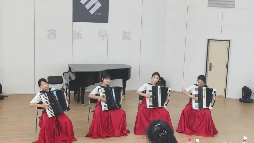 据悉,该音乐会作为中国历史最悠久、规模最大的国家级音乐节之一,汇聚了国内外手风琴领域的专家学者和众多高校学子、中小学生爱好者。在此次国际艺术盛会中,来自我校手风琴社团的12名学生,以青春昂扬的风貌、充满创意的演绎,展现出新时代大学生朝气蓬勃的精神面貌和艺术修养。