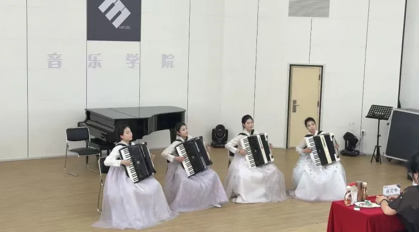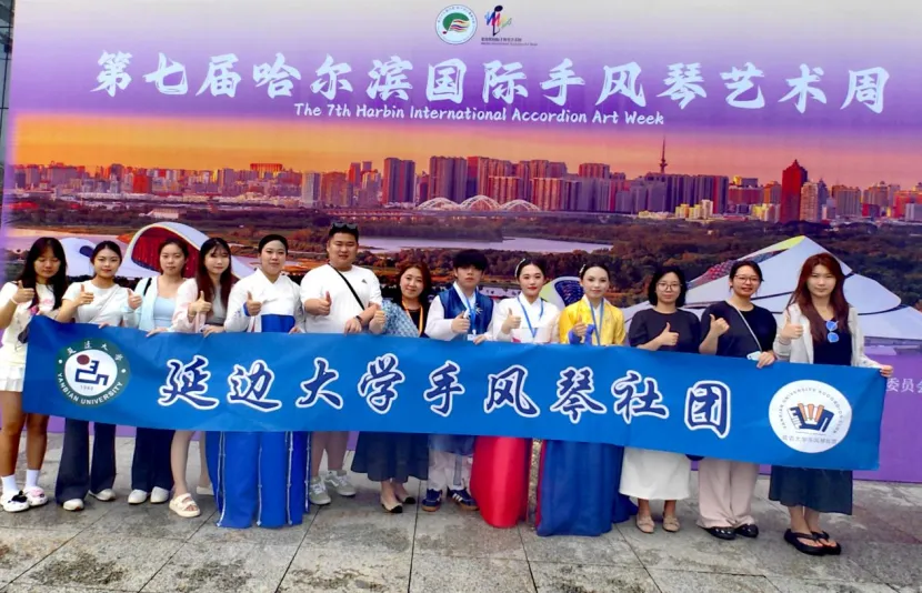 (艺术学院团委供稿)7月21日至26日,由中华人民共和国文化和旅游部、哈尔滨市人民政府主办的“第37届中国·哈尔滨之夏音乐会暨第七届哈尔滨国际手风琴艺术周”在“音乐之城”哈尔滨隆重举行。延边大学手风琴社团凭借扎实的艺术功底和出色的团队表现,斩获室内乐组三等奖、成人A组二等奖、成人B组优秀奖、重奏B组优秀奖等佳绩。社团指导教师、艺术学院音乐学专业中外乐器教研室主任崔花荣获“优秀指导教师奖”。